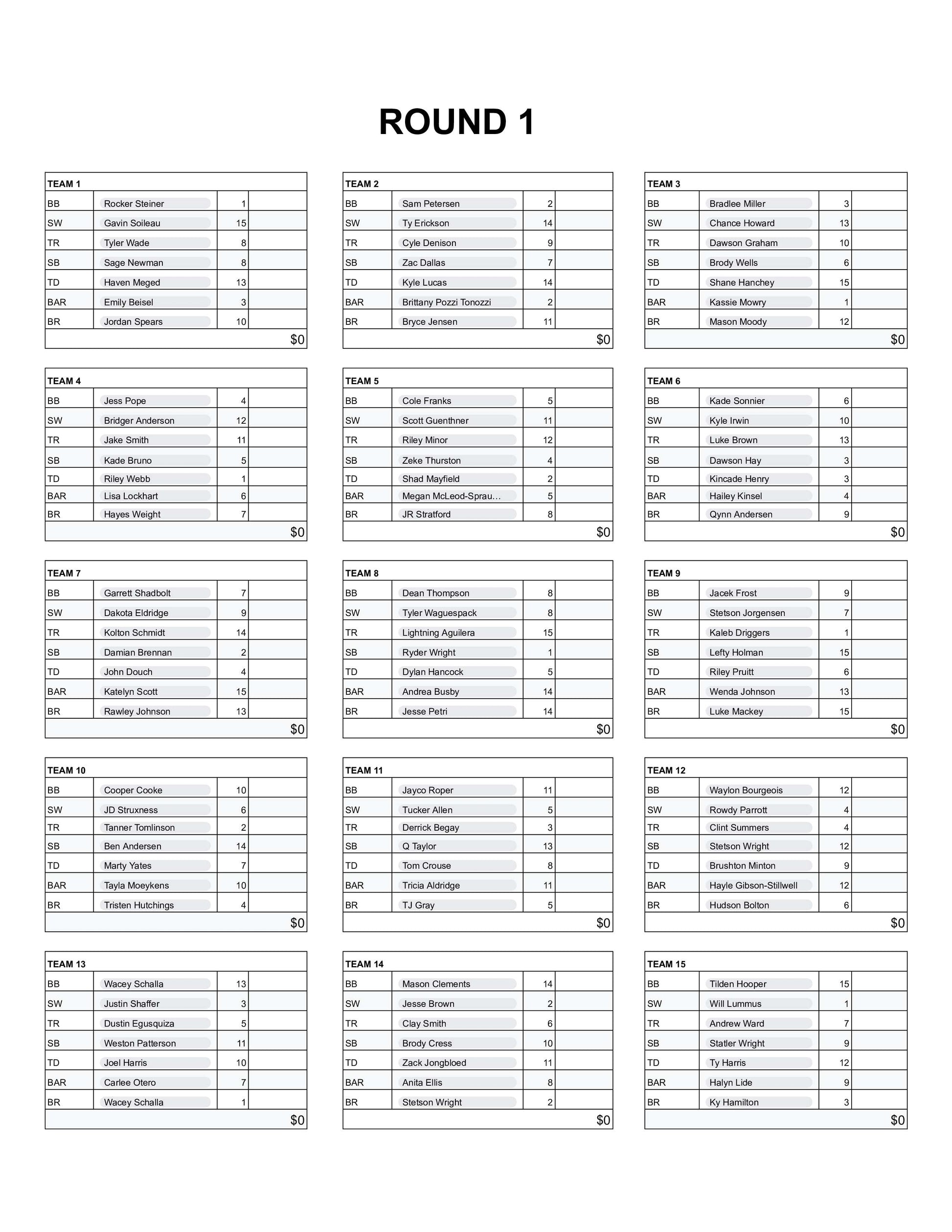**ALL FIRST ROUND TEAMS HAVE BEEN SOLD